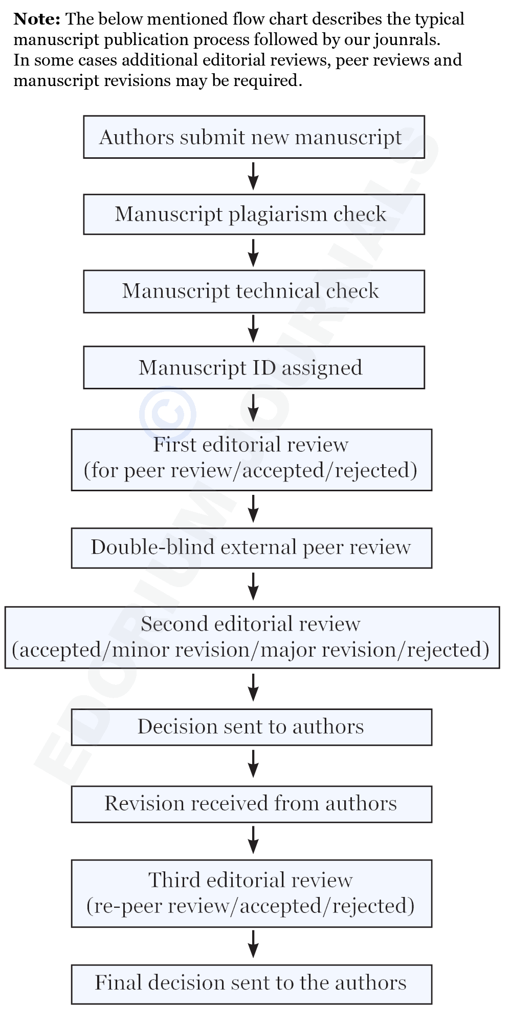 After author's response to editor's and reviewer's comments are received, the manuscript is reviewed by the assigned editor and if required the manuscript is again sent to the reviewers for their comments. After the editor has reviewed the manuscript and the responses, final decision about publication of the manuscript is taken. The authors are promptly informed of the decision.